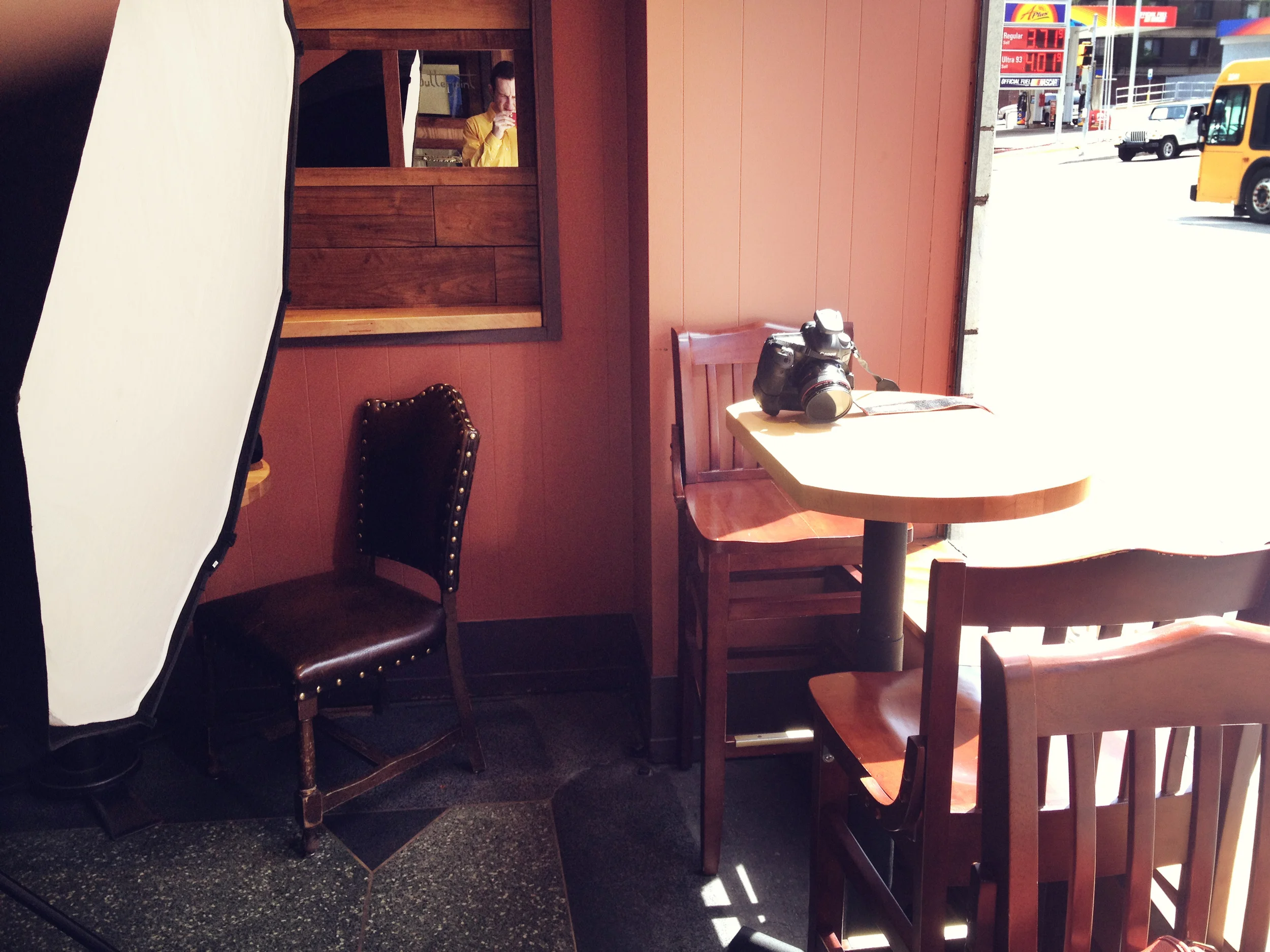 With that being said, one of my first shoots was to shoot a group of alcohol-less cocktails aka mocktails. Working here at Whirl and Edible, I've become quite accustomed to shooting beverages. Lighting and styling them is something I'm very comfortable with, so I knew shooting these would be just another stroll though the park. The first mocktails were shot next to a huge window at 2pm on a cloudless sunny day. I let the sun do it's job, and simply used my strobe as a fill light camera right. The final results proved to be very pleasing. Excuse the poor BTS. (You can click on the images to make them larger.)